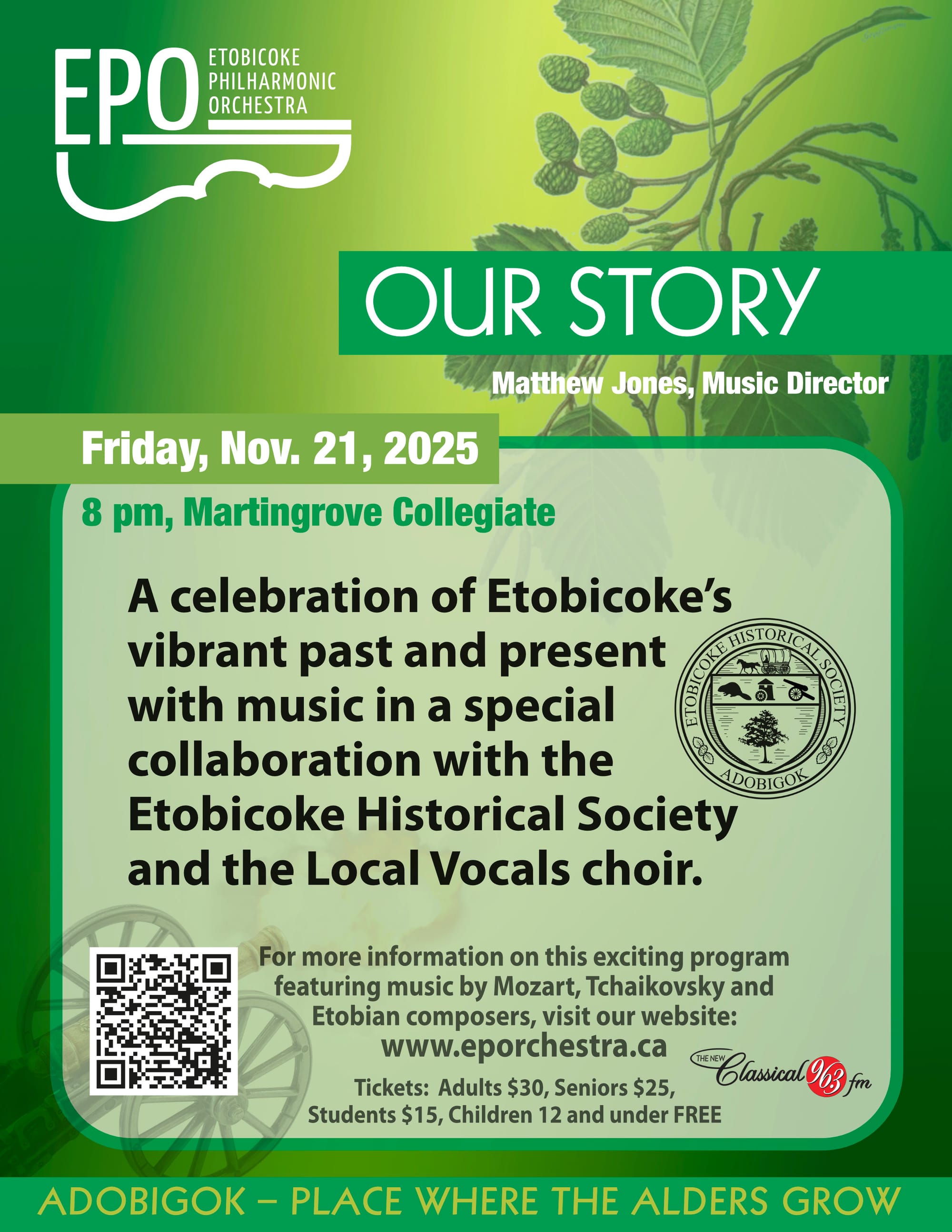 Join the Etobicoke Philharmonic Orchestra on Friday, November 21 at Martingrove Collegiate Institute—50 Winterton Drive, Etobicoke—for Our Story.