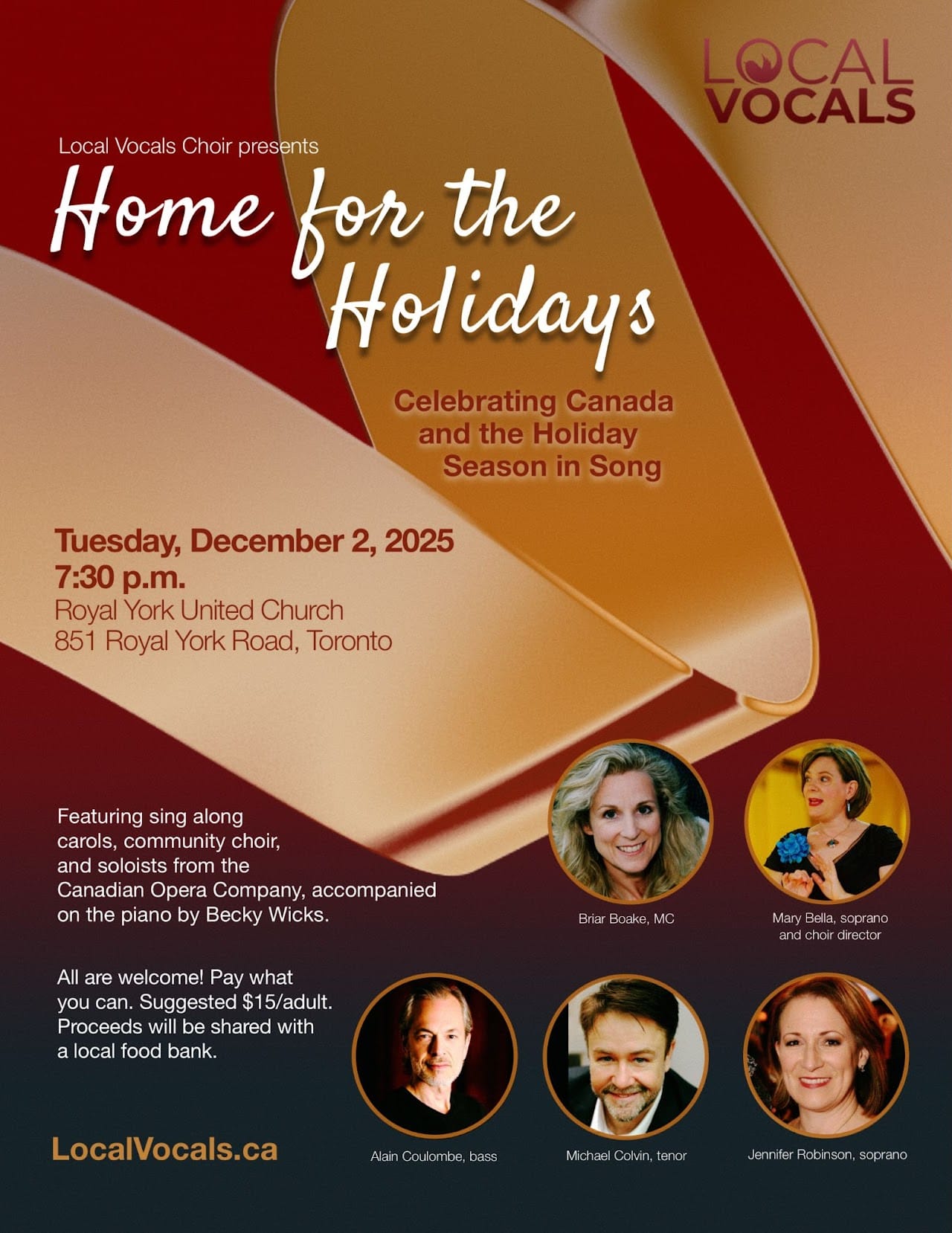 On December 2, join Local Vocals for their Winter Concert at Royal York Road United Church (851 Royal York Road, Etobicoke).